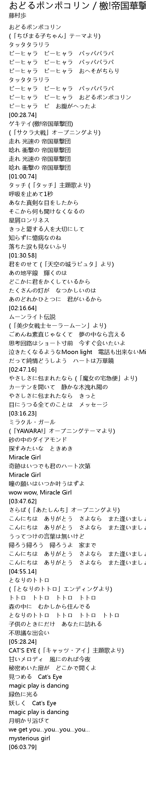| [00:00.59] | おどるポンポコリン (「ちびまる子ちゃん」テーマより) |