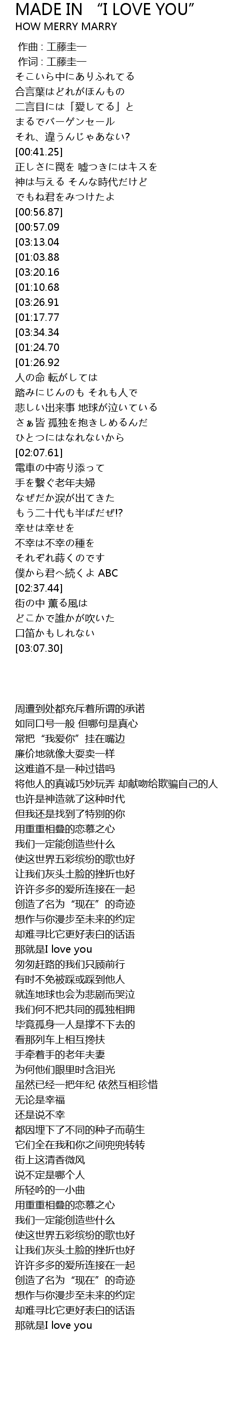 | [03:37.42][01:24.70] | I LOVE YOU |