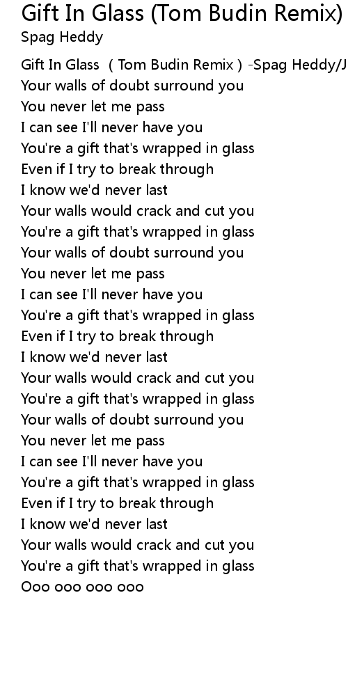 | [00:00.817] | Gift In Glass Tom Budin Remix Spag Heddy Josh Hand Tom Budin |