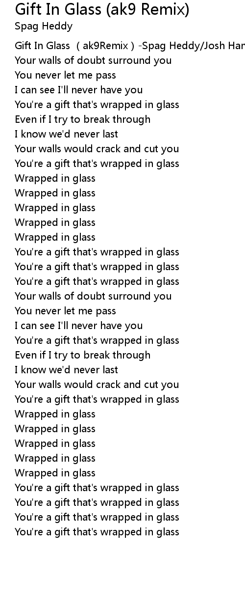 | [00:01.08] | Gift In Glass ak9Remix Spag Heddy Josh Hand AK9 |