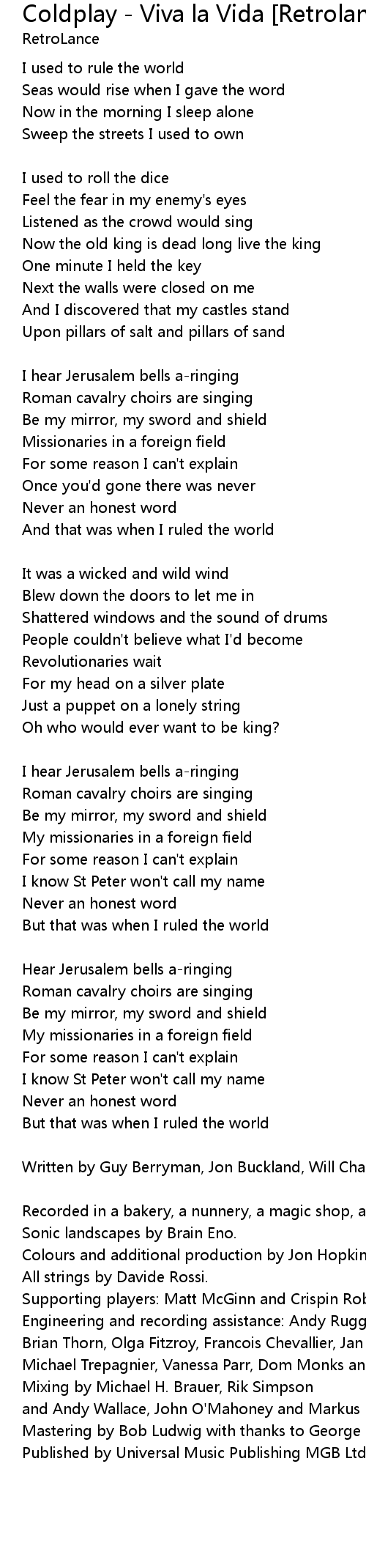 Coldplay - Viva la Vida [Retrolance Remix] Lyrics