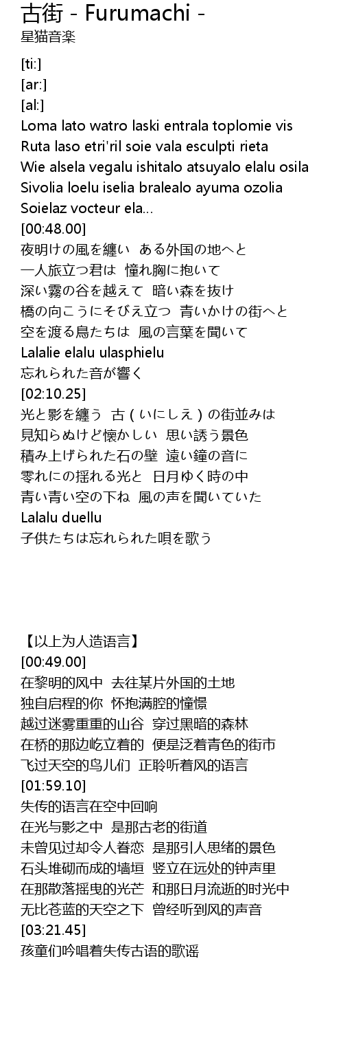 | [02:29.75] | 光と影を纏う 古(いにしえ)の街並みは |