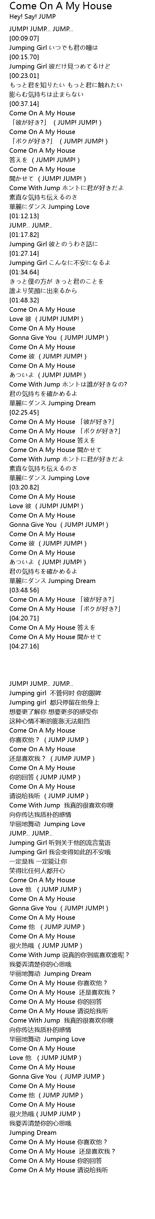| [02:00.14] | Come bi JUMP! JUMP! |