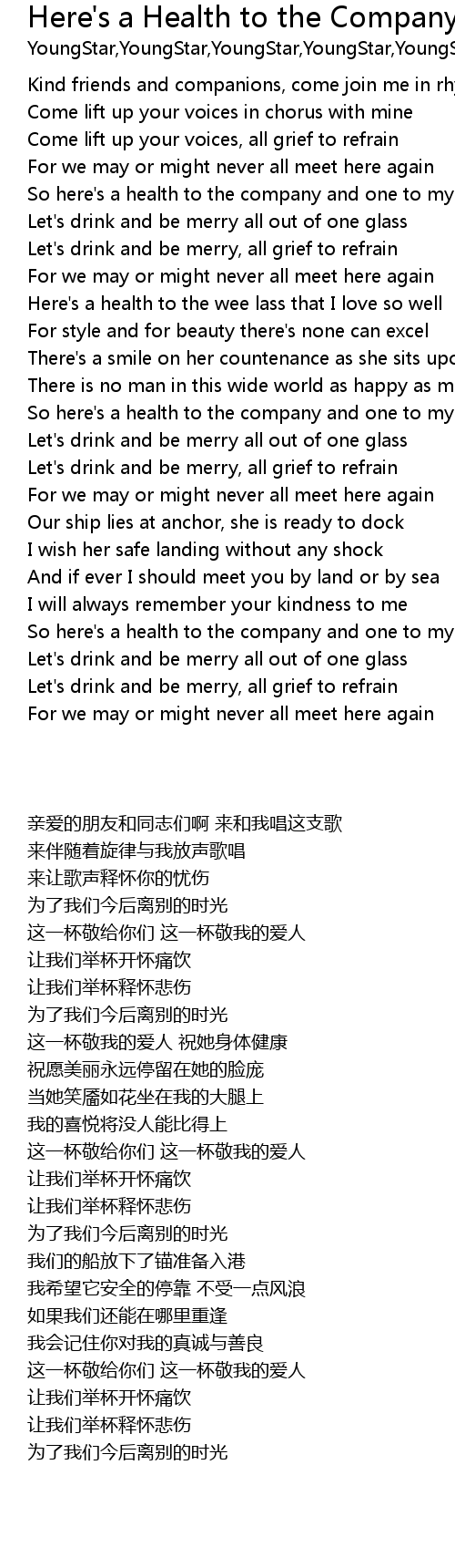 | [00:30.05] | So here's a health to the company and one to my lass |