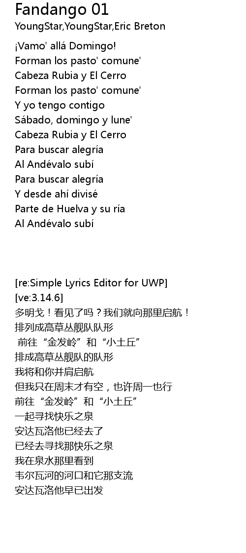 | [00:02.50] | Vamo' alla Domingo! |