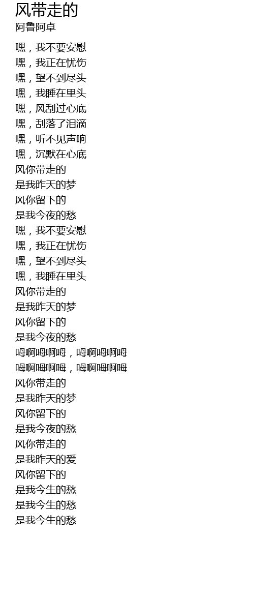 | [01:42.35] | fēng nǐ dài zǒu de |