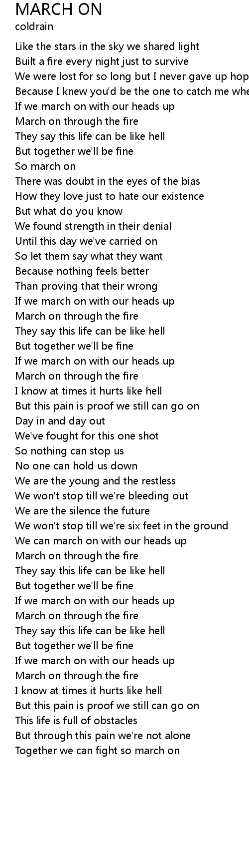 March on through the fire |