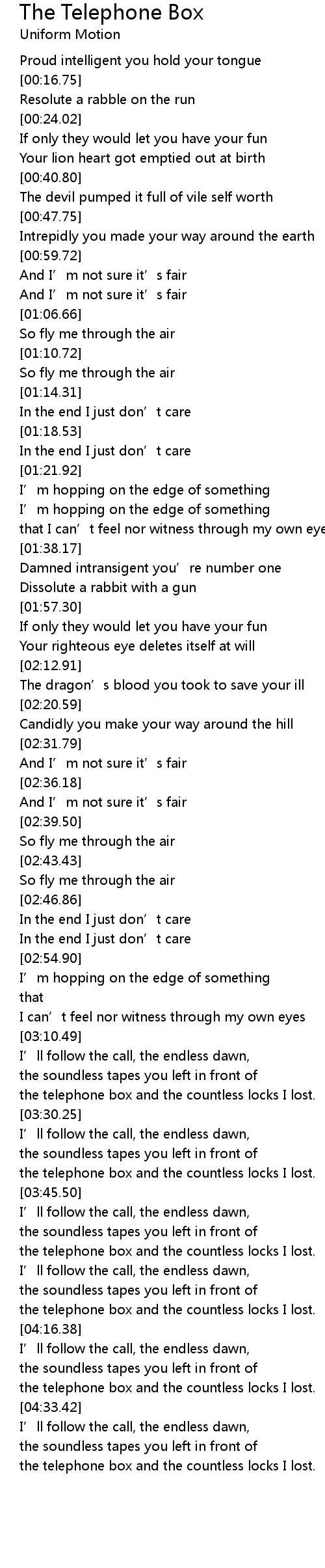 | [04:11.36] | the telephone box and the countless locks I lost. |