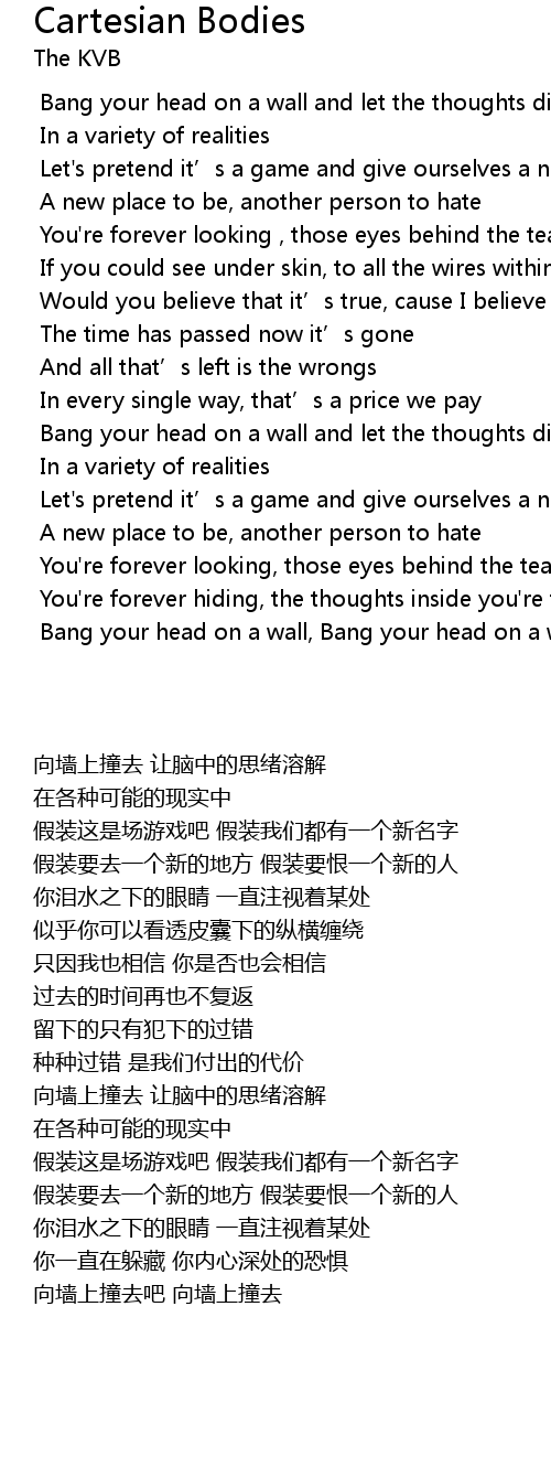 | [00:58.747] | Bang your head on a wall and let the thoughts dissolve |