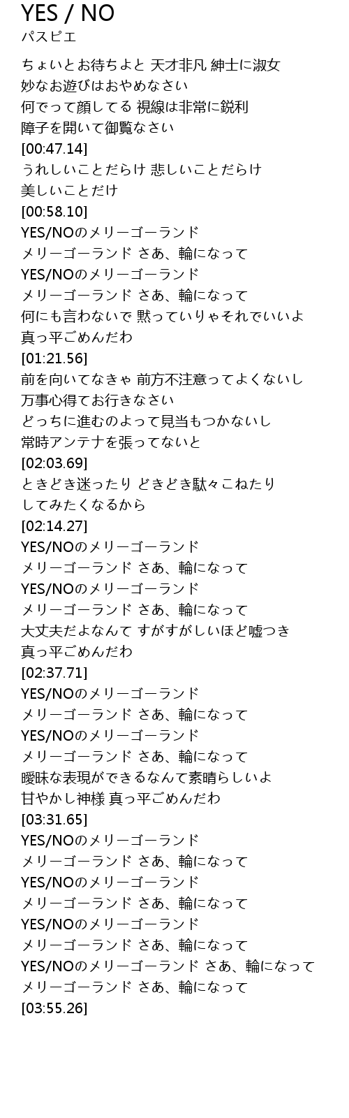 | [02:15.00] | YES/NOのメリーゴーランド |