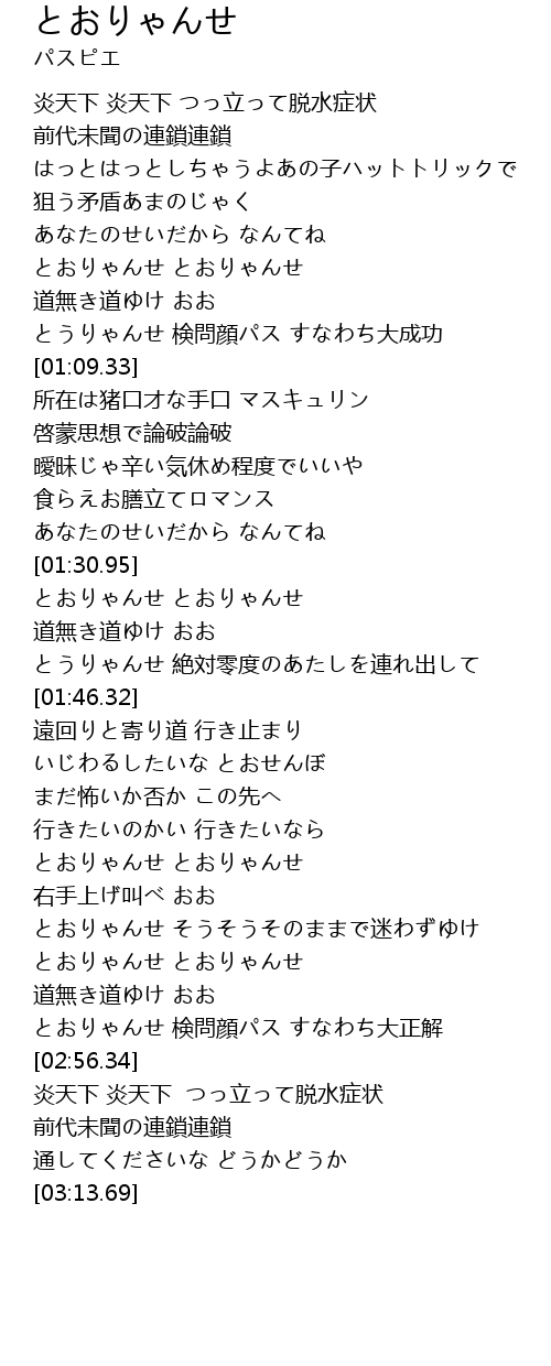 | [01:02.16] | とうりゃんせ 検問顔パス すなわち大成功 |