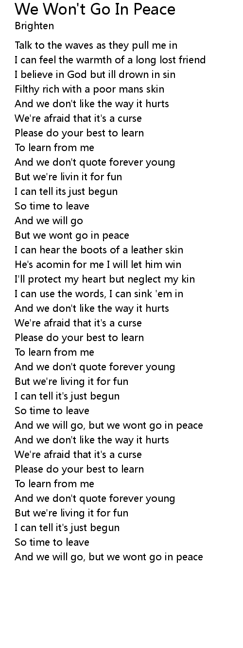 We Won't Go In Peace Lyrics