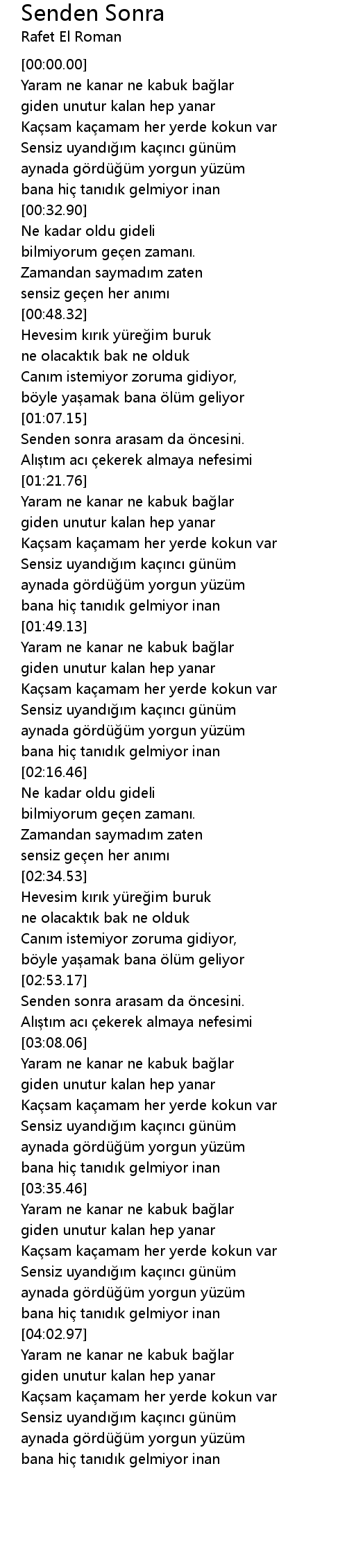 | [02:53.43] | Senden sonra arasam da ncesini. |