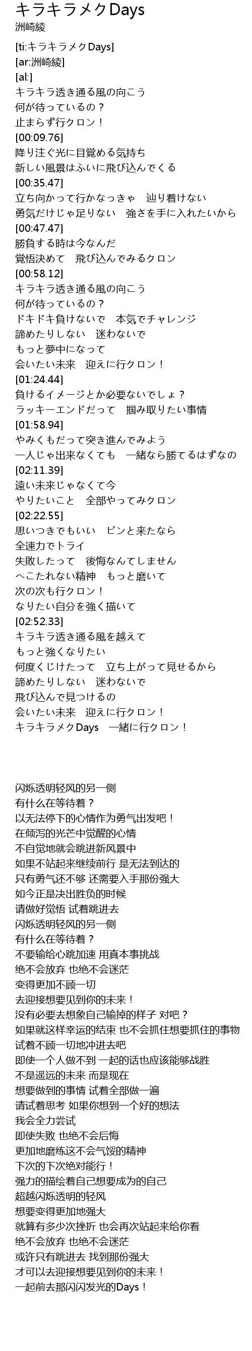 | [03:32.92] | キラキラメクDays 一緒に行クロン! |