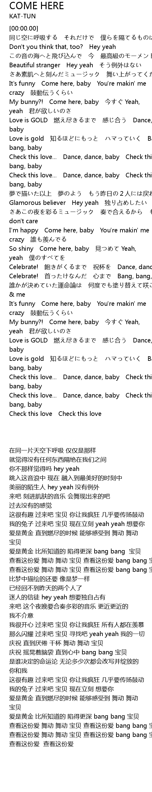 | [03:37.90] | Check this love... Dance, dance, baby Check this love... Bang, bang, baby |