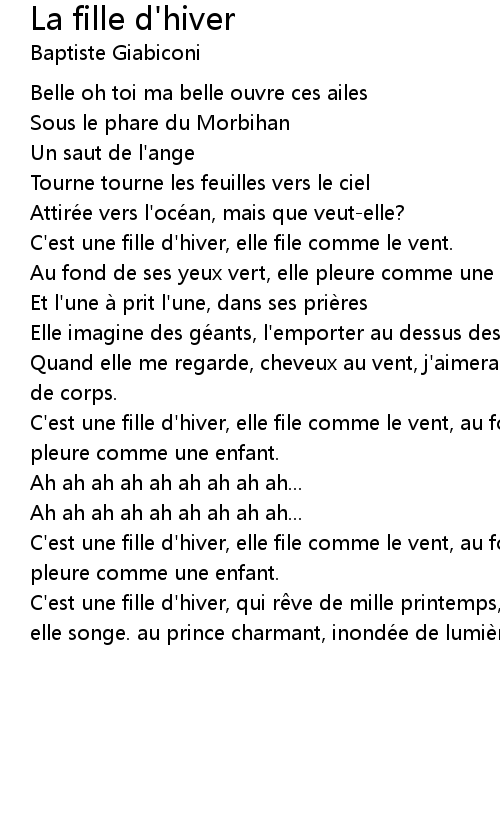 | C' est une fille d' hiver, qui r ve de mille printemps, et comme une é coliè re, elle songe. au prince charmant, inondé e de lumiè re... |
