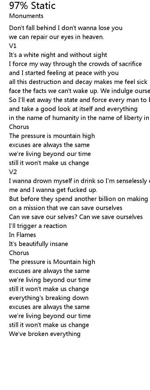 | Don't fall behind I don't wanna lose you | |