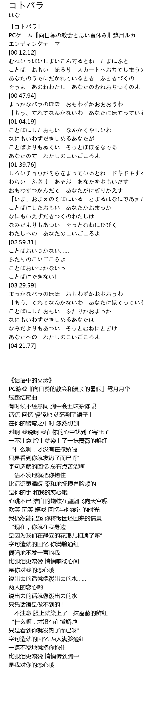 PCゲーム『向日葵の教会と長い夏休み』鷺月ルカ エンディングテーマ |