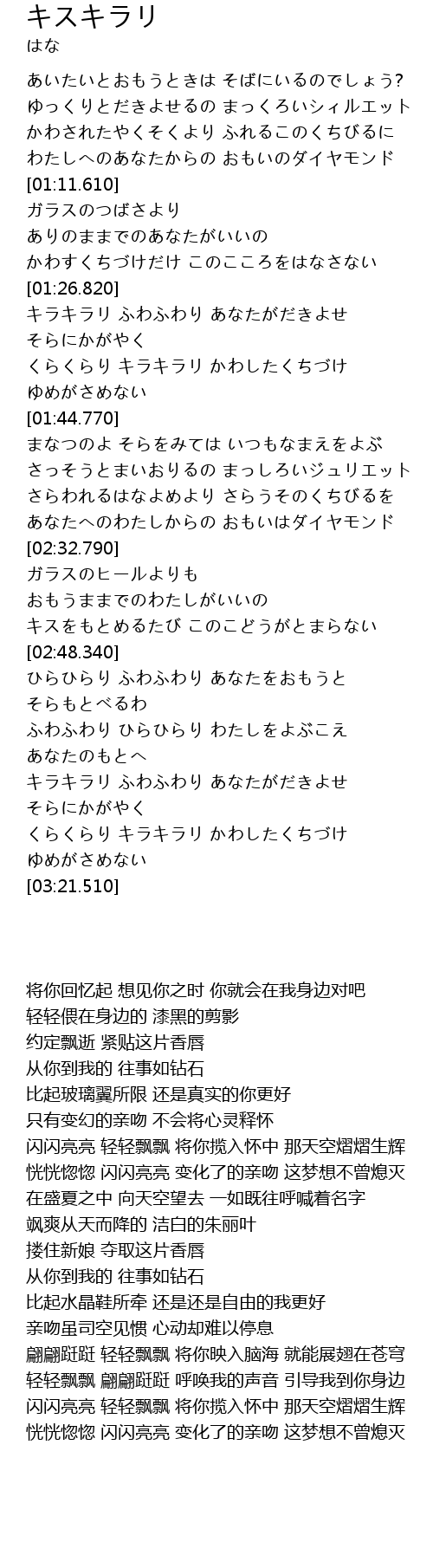 くらくらり キラキラリ かわしたくちづけ ゆめがさめない |