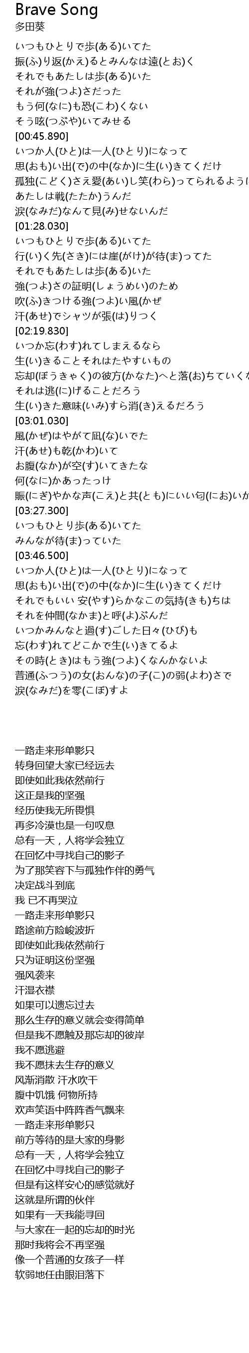 | [03:50.620] | いつか人(ひと)は一人(ひとり)になって |