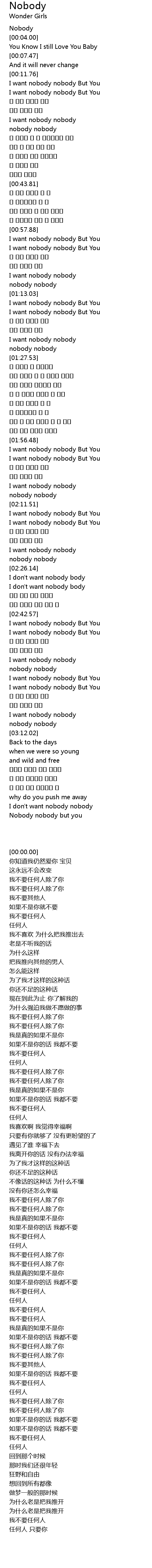 | [00:58.25] | I want nobody nobody But You |