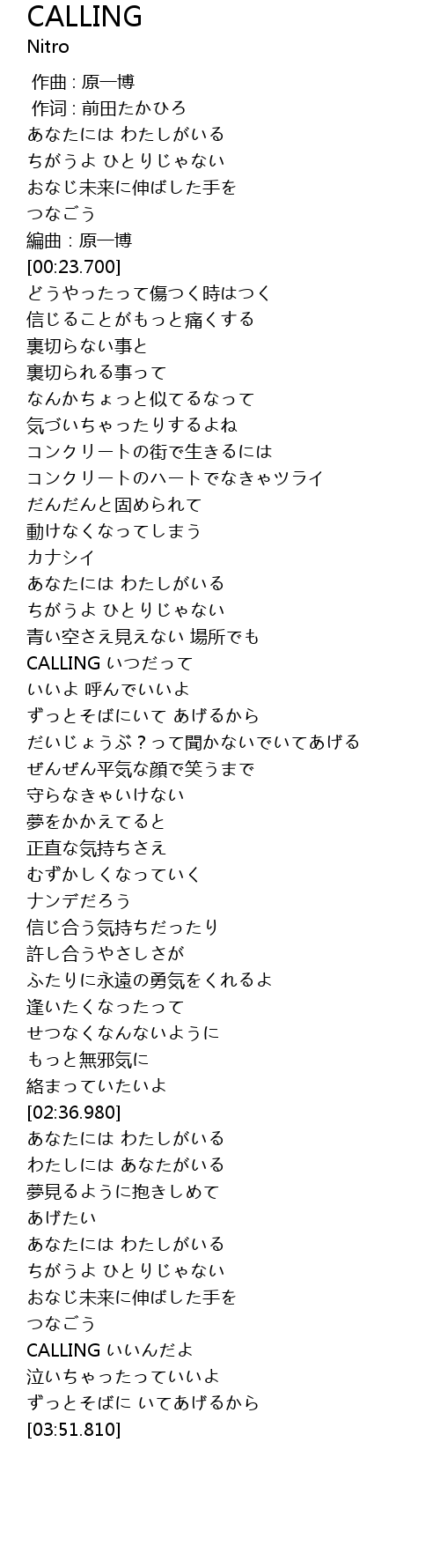 | [03:37.690] | CALLING いいんだよ |