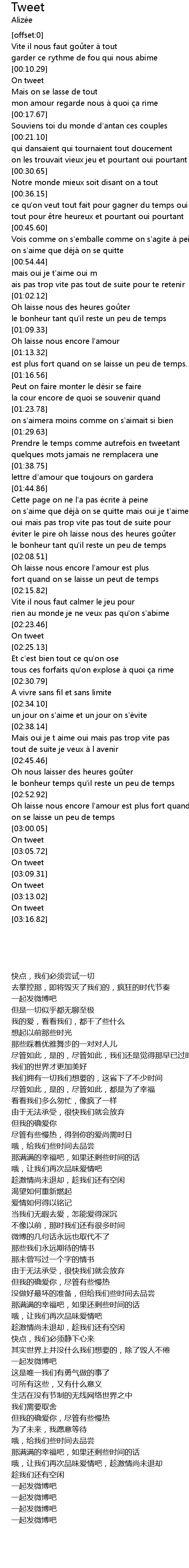| [01:32.91] | Prendre le temps comme autrefois en tweetant |