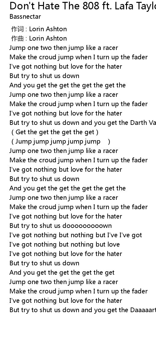 | [00:05.990] | I' ve got nothing but love for the hater |