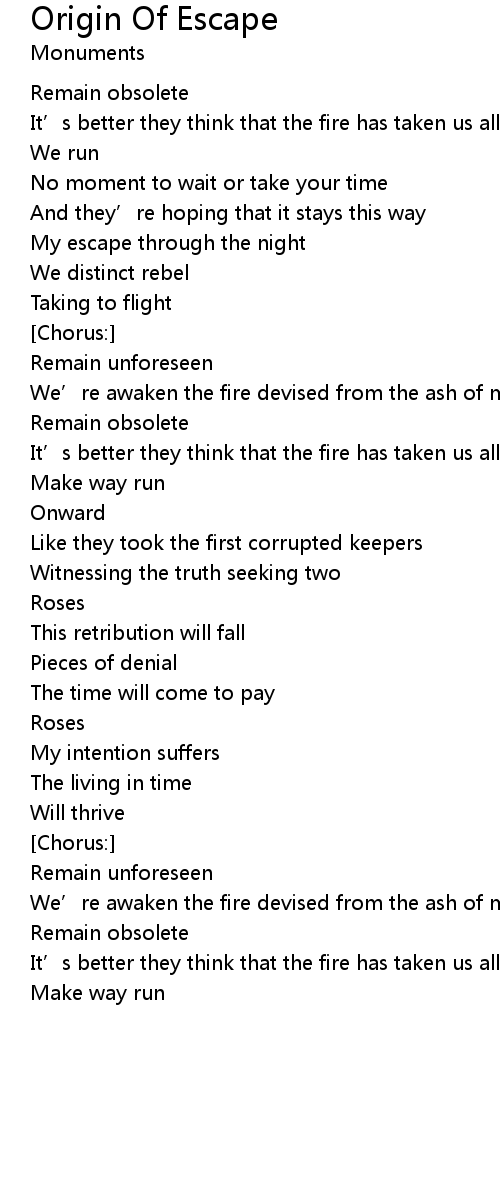 | Song | Origin Of Escape |