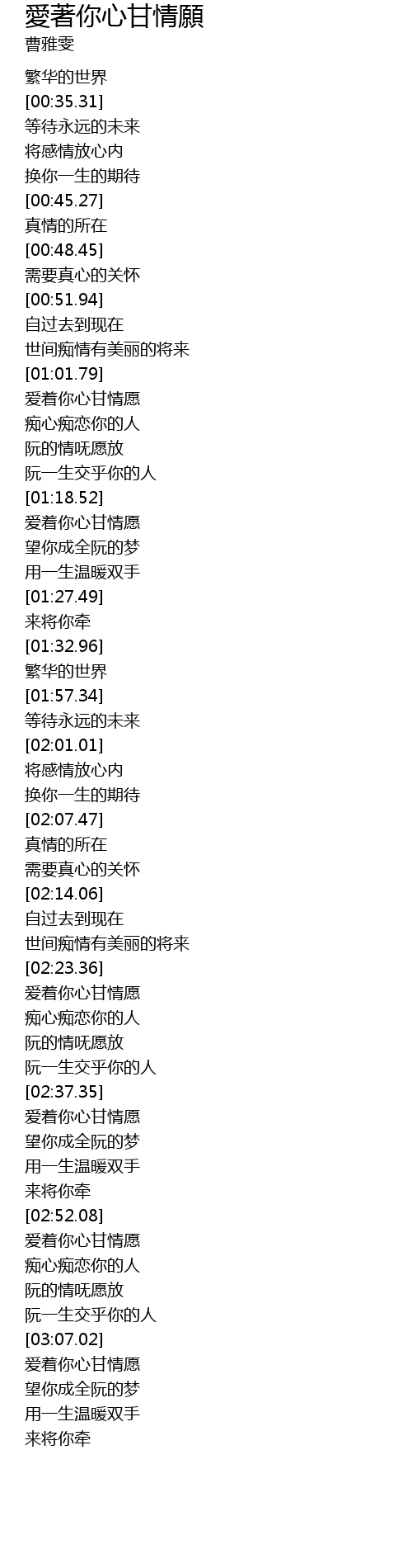 | [02:38.04] | ài zhe nǐ xīn gān qíng yuàn |