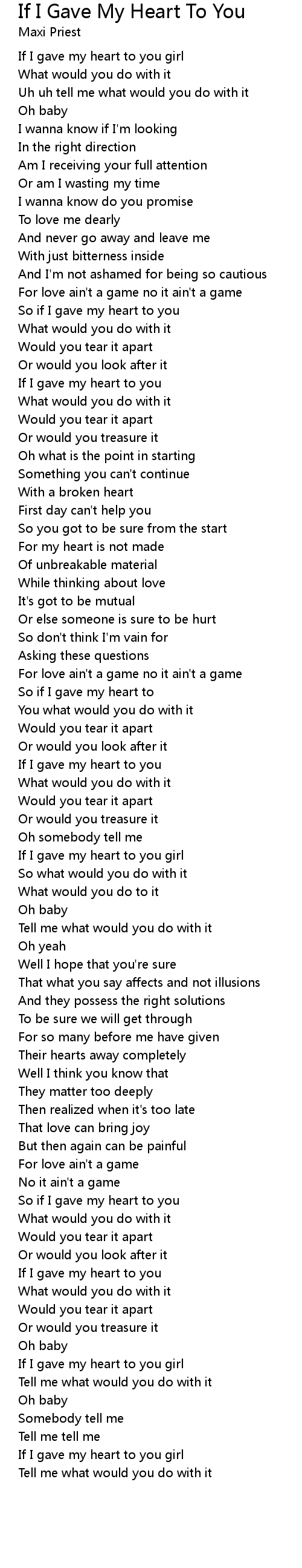 Song If I Gave My Heart To You
