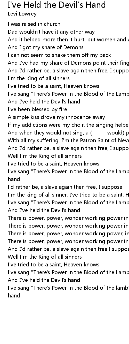 I've sang "There's Power in the Blood of the Lamb" and I've held the Devil's hand |