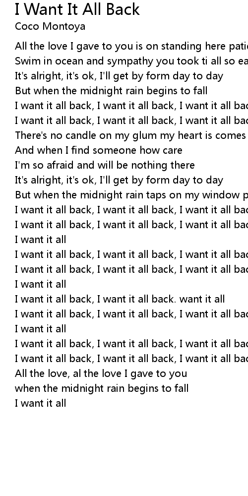 I want it all back, I want it all back. want it all |