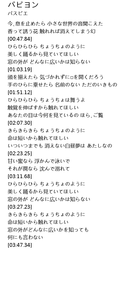 | [00:48.09] | ひらひらひら ちょうちょのように |