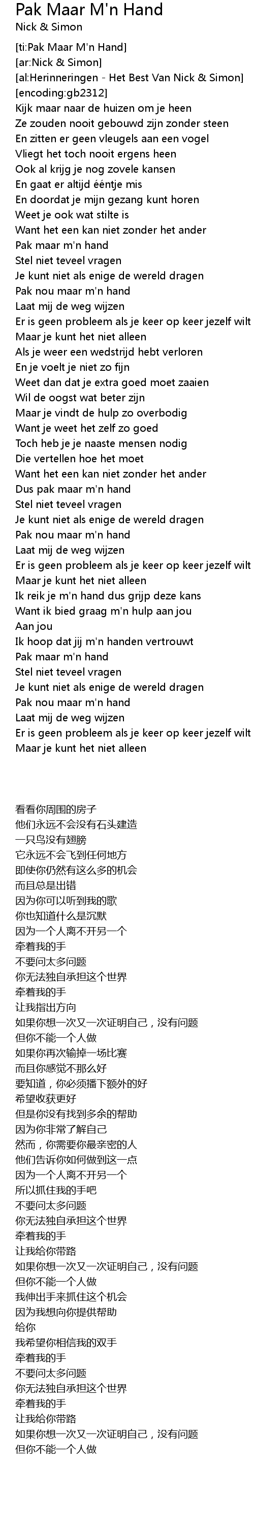 | [00:51.90] | Pak maar m'n hand |