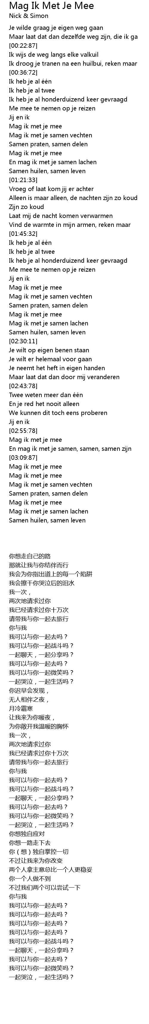 | [03:44:78] | Mag ik met je samen lachen |