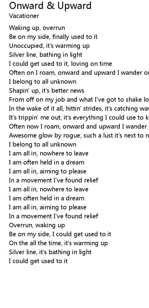 Often now I roam, onward and upward I wander on |