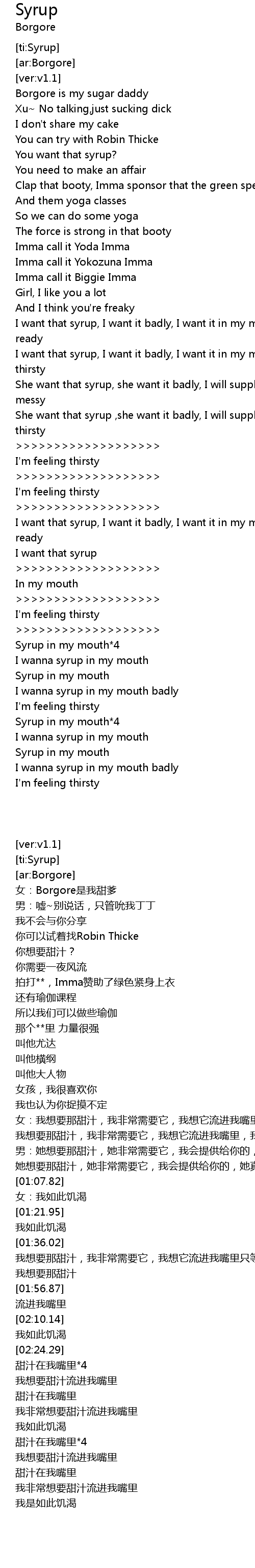 [00:47.06] I want that syrup, I want it badly, I want it in my mouth, I'm feelin thirsty