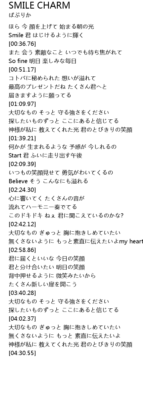| [00:29.71] | Smile 君 はじけるように輝く |