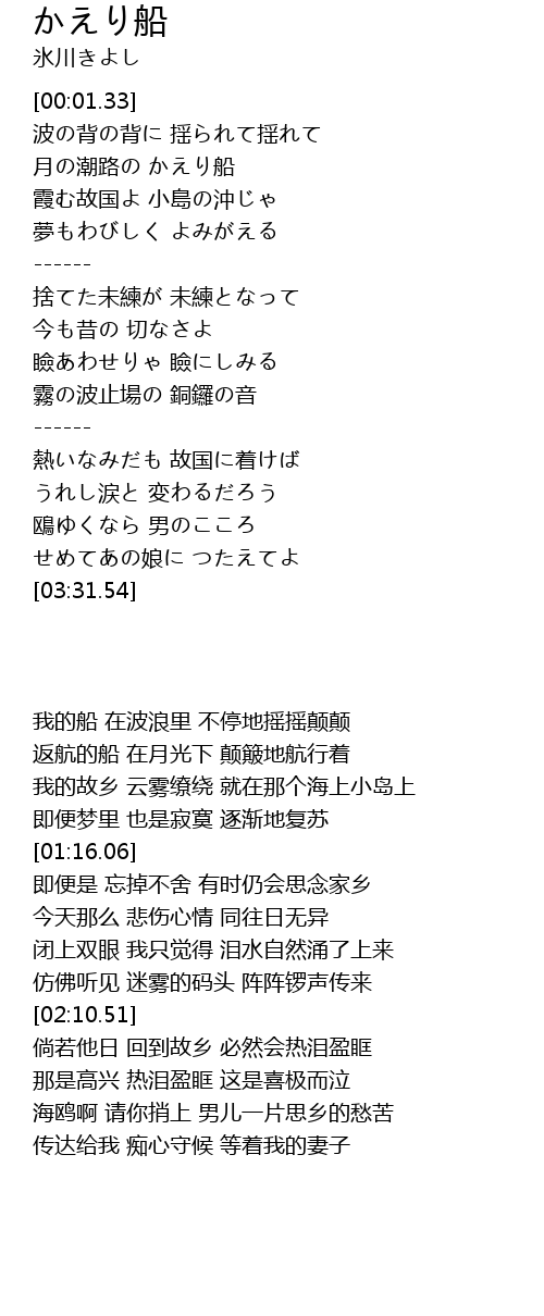 | [02:38.70] | 熱いなみだも 故国に着けば |