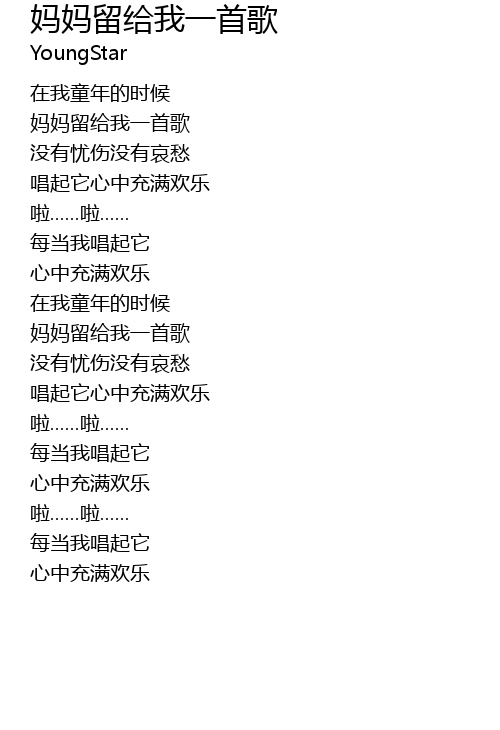 | [00:21.890] | mā mā liú gěi wǒ yī shǒu gē |