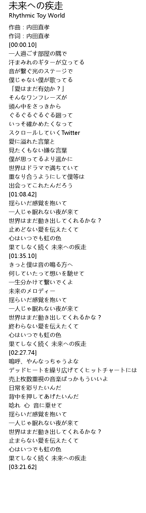 | [03:15.73] | 果てしなく続く 未来への疾走 |