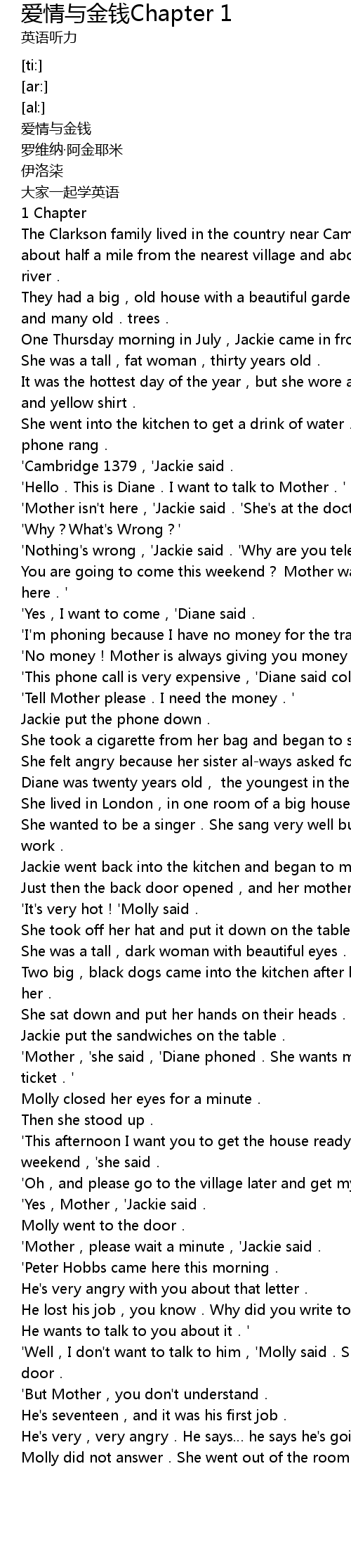 | [04:45.76] | 'Mother,'she said,'Diane phoned.She wants money for her train ticket.' |