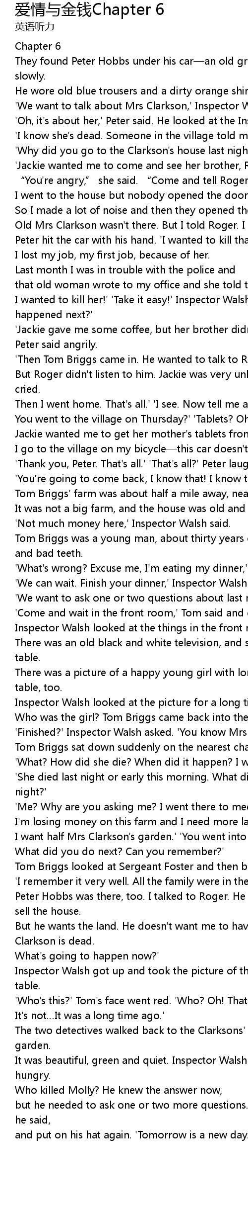 | [00:29.70] | ' Oh, it' s about her,' Peter said. He looked at the Inspector. |