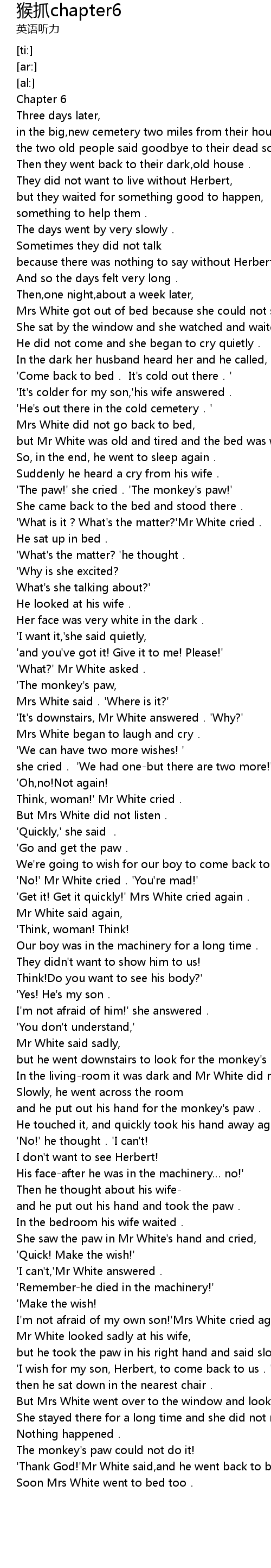 | [01:29.86] | 'The paw!' she cried.'The monkey's paw!' |