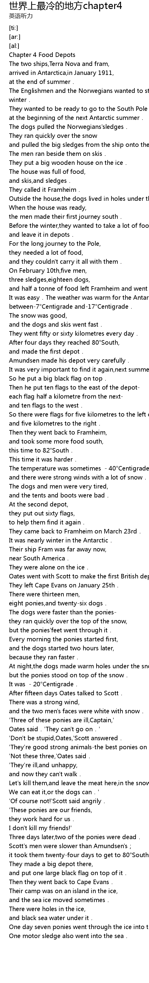 | [00:41.00] | The dogs pulled the Norwegians'sledges. |