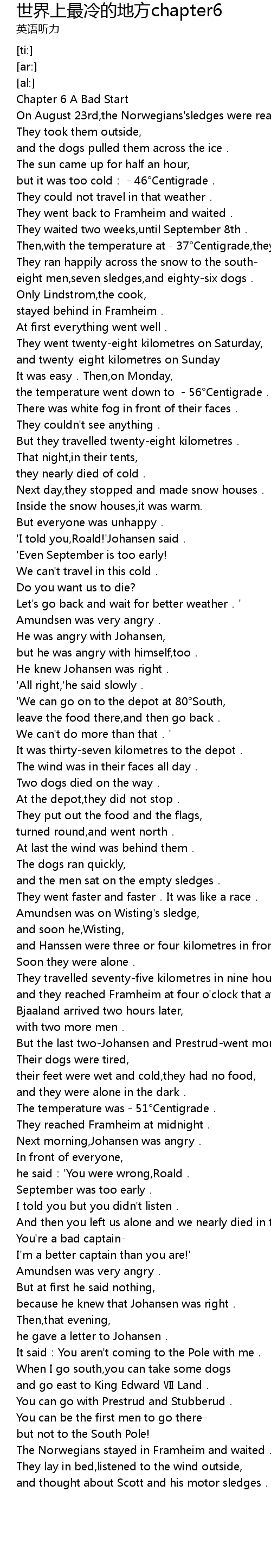 | [00:10.30] | On August 23rd,the Norwegians'sledges were ready. |