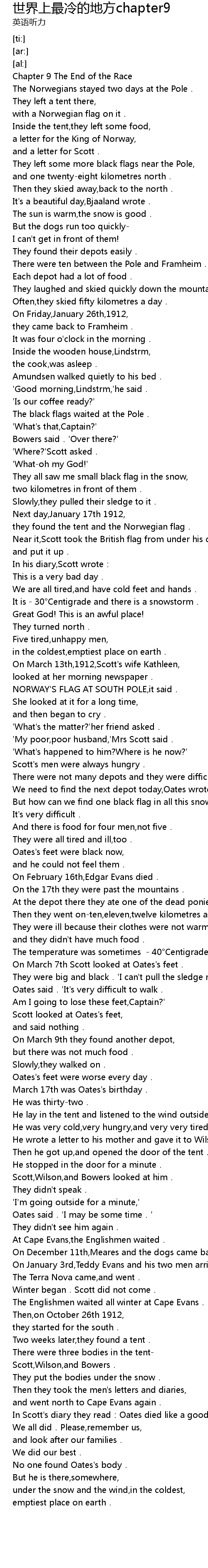 | [03:21.69] | NORWAY' S FLAG AT SOUTH POLE, it said |