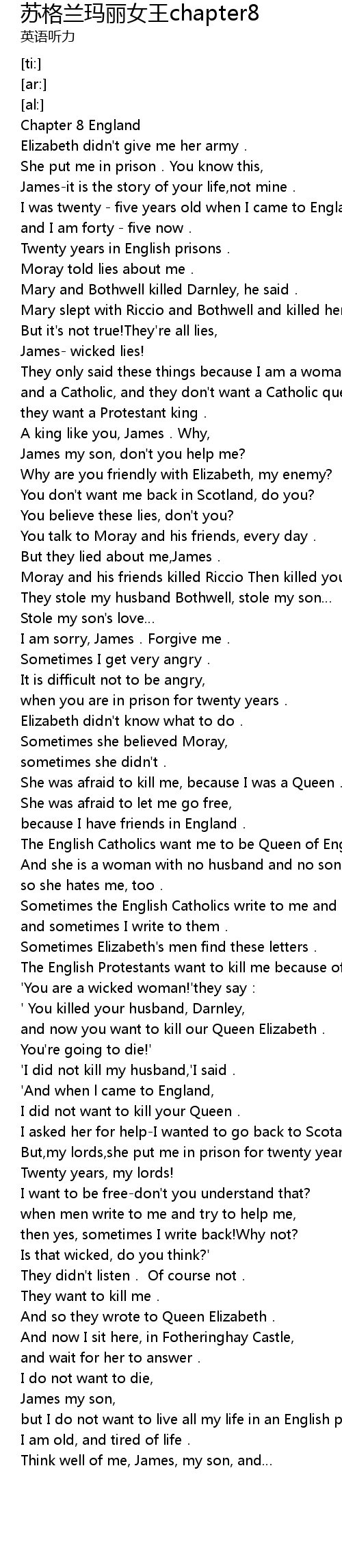 | [03:08.04] | The English Catholics want me to be Queen of England, not her |