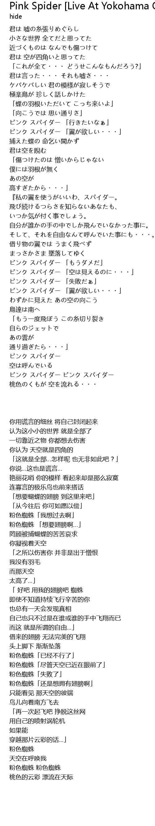 | [02:03.53] | ピンク スパイダー 「翼が欲しい・・・」 |